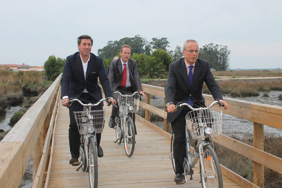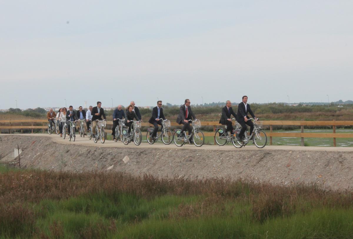 Partindo da Ribeira do Mancão, após ter sido descerrada uma placa evocativa da requalificação, a comitiva percorreu o percurso marginal até à Ribeira do Gago, de bicicleta, permitindo assim uma tomada de contacto com as características principais da intervenção: por um lado a defesa e valorização da área marginal à Ria e, por outro lado, o estabelecimento de uma ecovia, ciclável e pedonal, ao logo da sua extensão, potenciando a visitação de um espaço de grande riqueza paisagística e ambiental.
