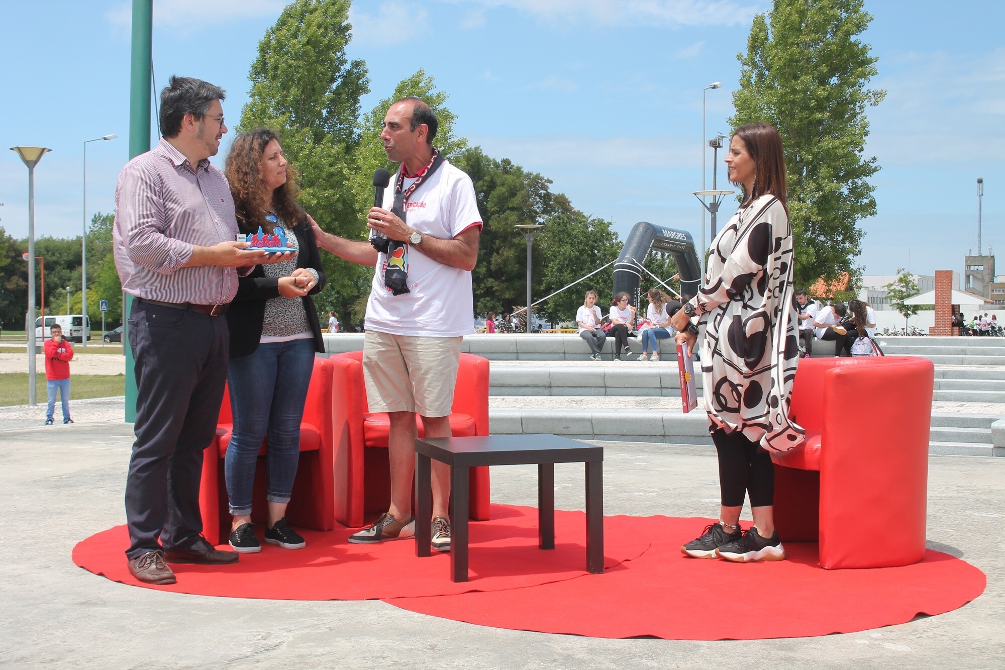 A caravana cicloturística, com centenas de alunos e professores, partiu de Ovar e chegou ao Parque Municipal da Saldida, onde foi recebida pelo Vice-Presidente da Câmara Municipal, Januário Cunha, e pela Vereadora do Desporto e Juventude, Fátima Arêde.